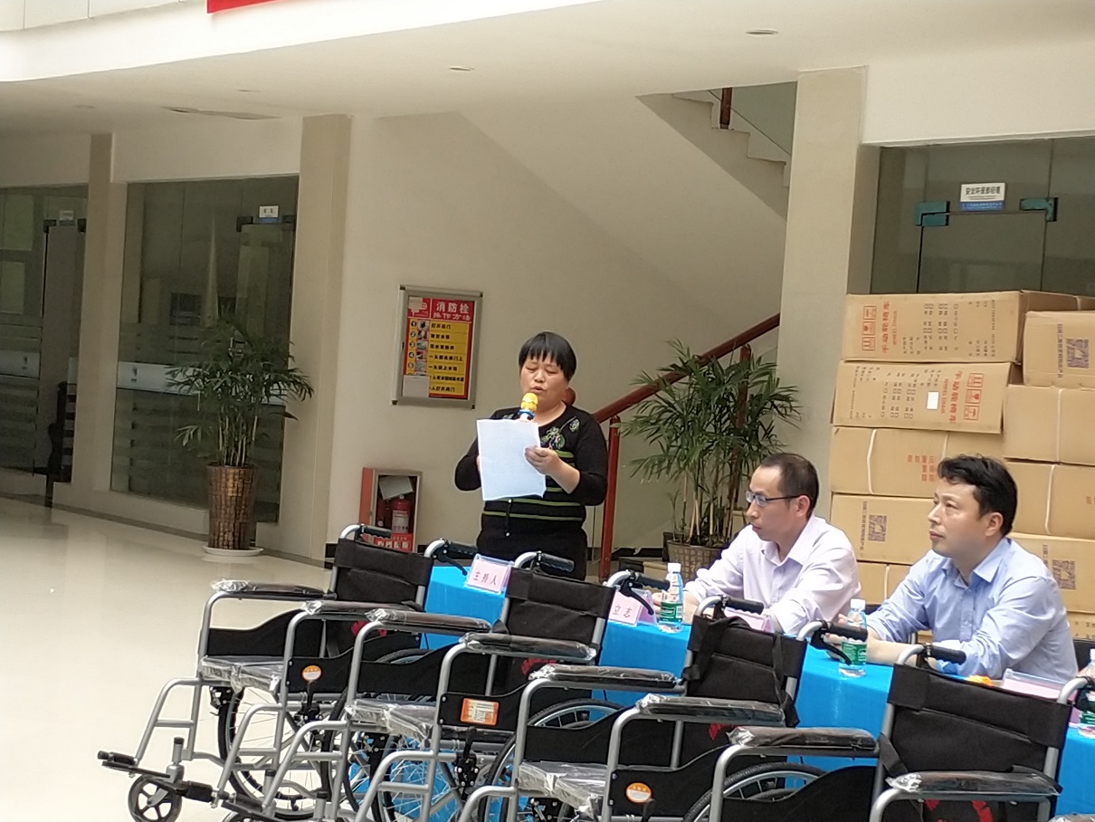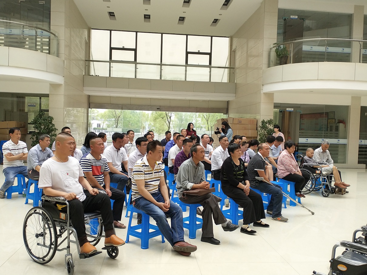 儀式最后陳總代表公司向殘聯(lián)宗理事長移交了100輛輪椅,殘聯(lián)按事先分配計(jì)劃,當(dāng)場向19個(gè)鄉(xiāng)鎮(zhèn)分發(fā)了全部輪椅。活動(dòng)取得圓滿成功!