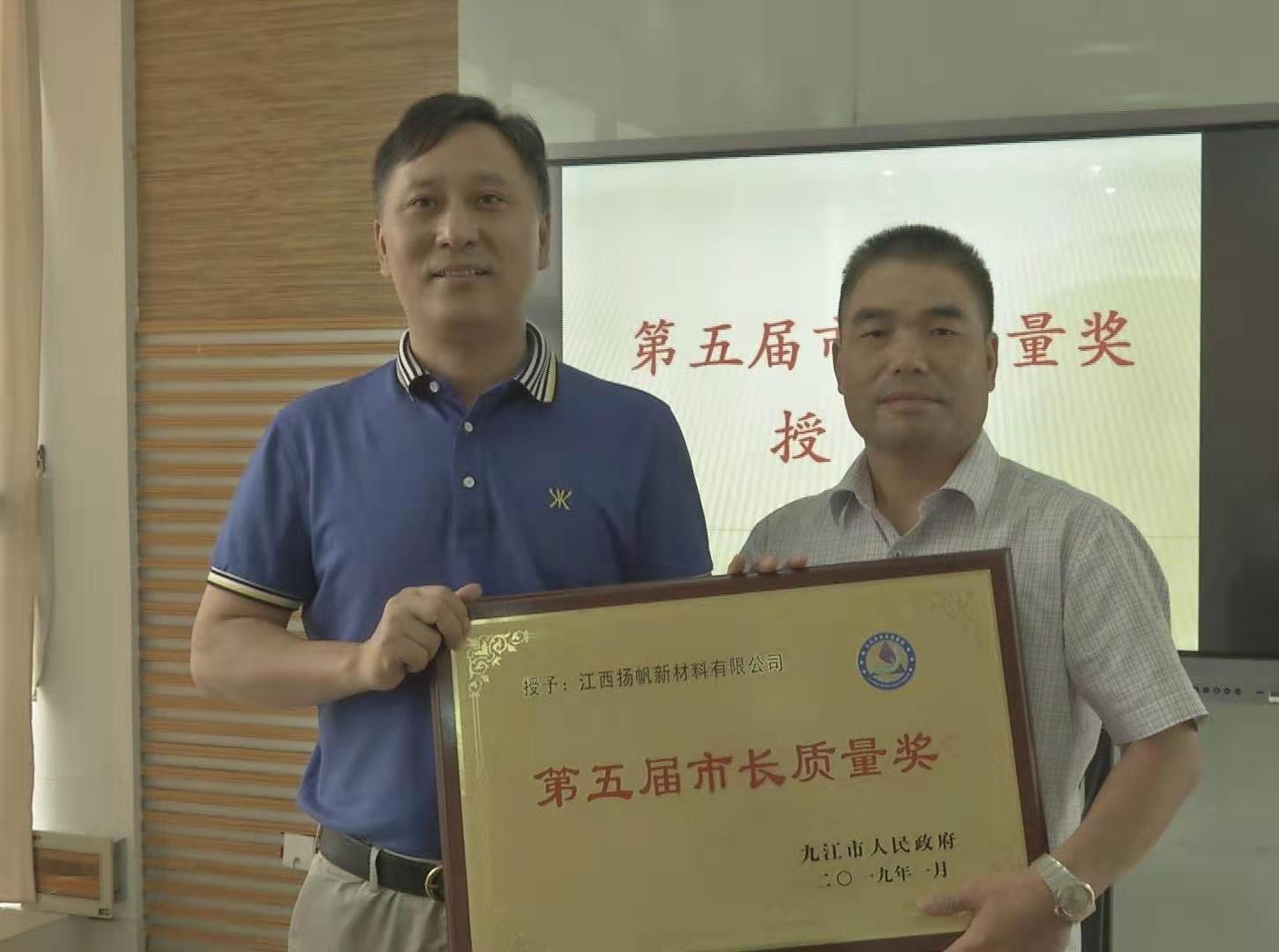 8月26日,九江市、彭澤縣兩級市場監(jiān)督管理工作人員專程來到江西揚帆,為企業(yè)頒發(fā)2018年第五屆“市長質(zhì)量獎”。我公司是2018年度彭澤縣唯一一家“市長質(zhì)量獎”獲獎單位。