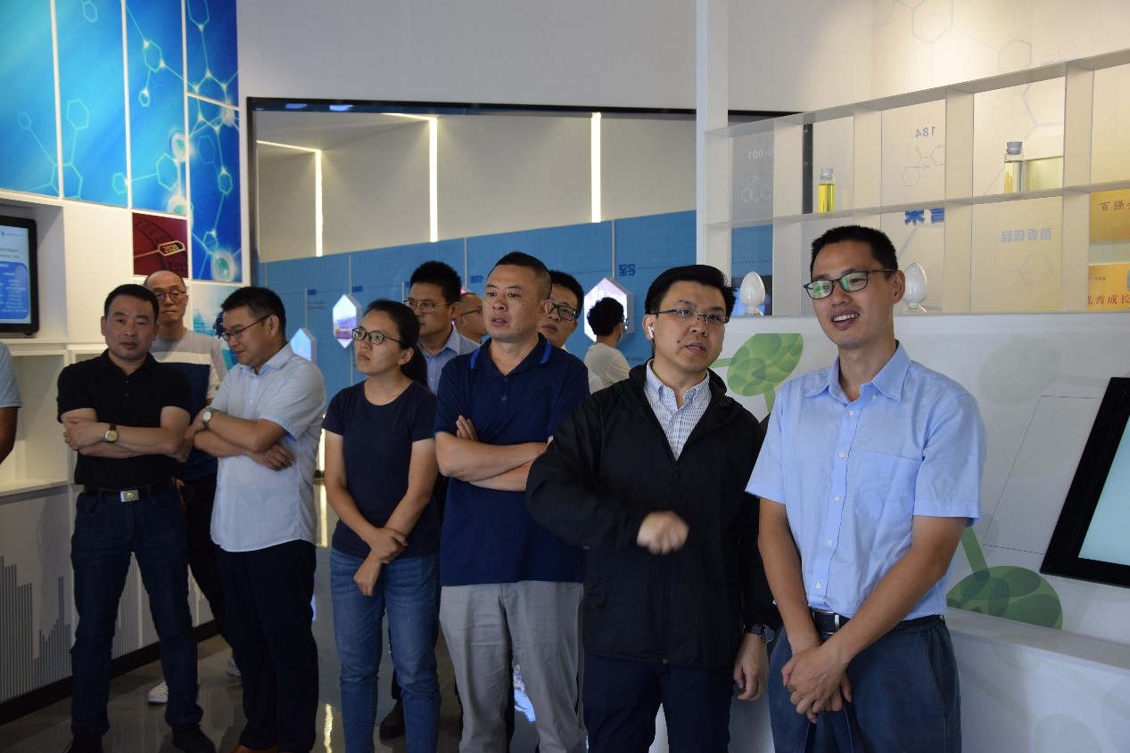 考察團(tuán)一行先是參觀了企業(yè)發(fā)展(產(chǎn)品)展示廳和黨建展廳。樊彬董事長向各位領(lǐng)導(dǎo)就公司發(fā)展歷程、企業(yè)文化、產(chǎn)品工藝流程、設(shè)備裝置、市場前景及黨建工作情況等作了簡要介紹。并對(duì)上虞生產(chǎn)基地目前的主要產(chǎn)品、未來發(fā)展規(guī)劃、競爭優(yōu)勢、人才戰(zhàn)略方面及化工制造業(yè)工藝升級(jí)工作做了重點(diǎn)匯報(bào)。雙方就目前社會(huì)、經(jīng)濟(jì)形勢下精細(xì)化工、新材料、光固化等領(lǐng)域的發(fā)展情況、所遇到的問題及解決方法作了深入的交流。
