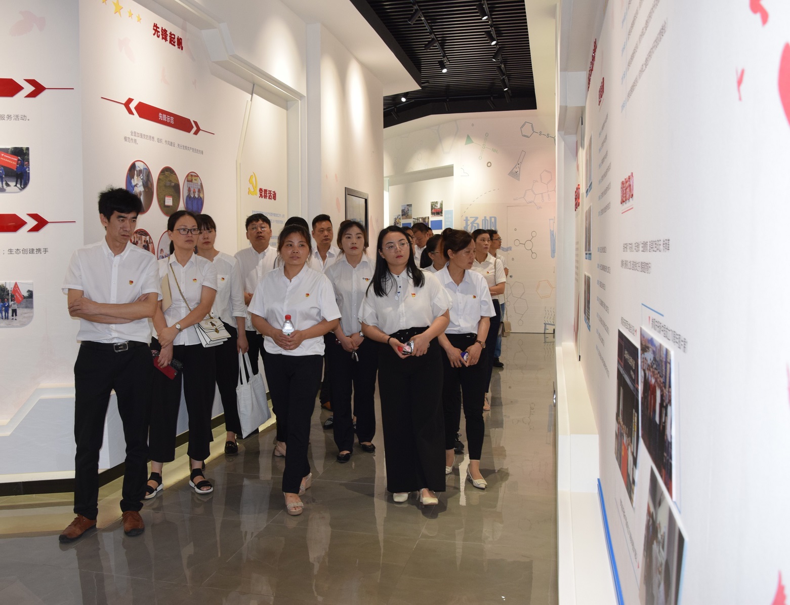 在解說員的帶領(lǐng)下,全體黨員認(rèn)真聆聽講解,詳細(xì)觀看黨建展示,感受到濃厚的黨建氛圍,體悟黨建示范引領(lǐng)作用。