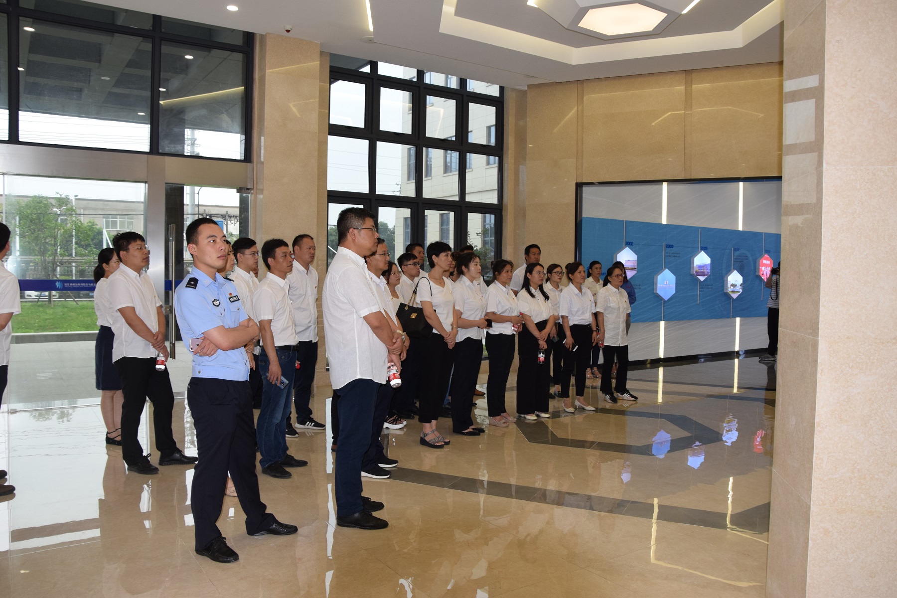 在建黨99周年來臨之際,為增強(qiáng)黨員政治意識(shí),堅(jiān)定理想信念,7月1日上午,杭州灣綜管辦領(lǐng)導(dǎo)帶領(lǐng)34名新發(fā)展黨員來到上虞生產(chǎn)基地參觀揚(yáng)帆黨建展廳。公司黨支部書記樊相徐參與接待工作并分享了黨建工作體會(huì)。