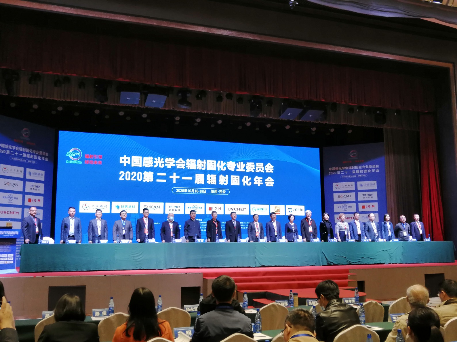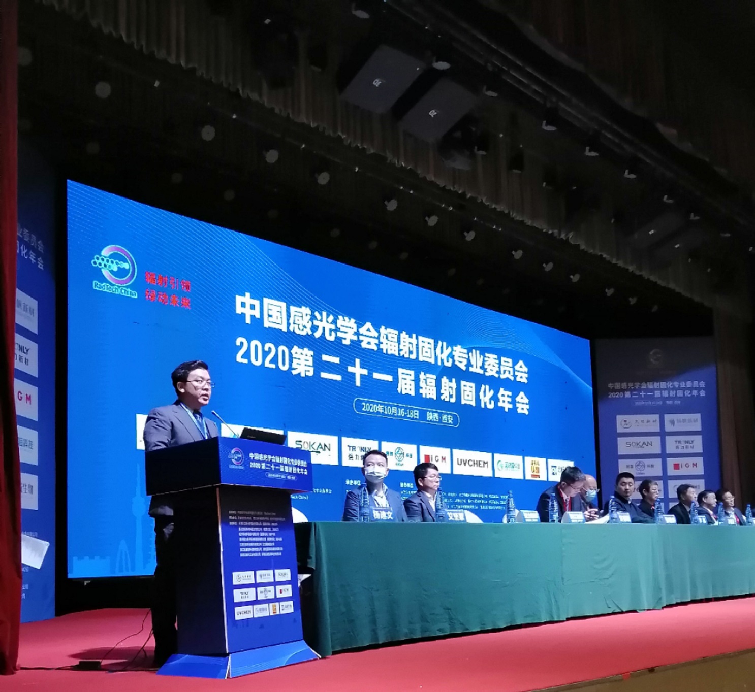 2020年10月16日-18日,《中國感光學會輻射固化專業(yè)委員會》第二十一屆輻射固化年會在西安順利召開,有近500名行業(yè)企業(yè)界、學界領袖參會。作為行業(yè)內(nèi)重要企業(yè)及本次會議的贊助商之一,浙江揚帆新材料股份有限公司董事長樊彬、副總裁朱俊飛以及技術總監(jiān)吳紅輝等率團出席會議。