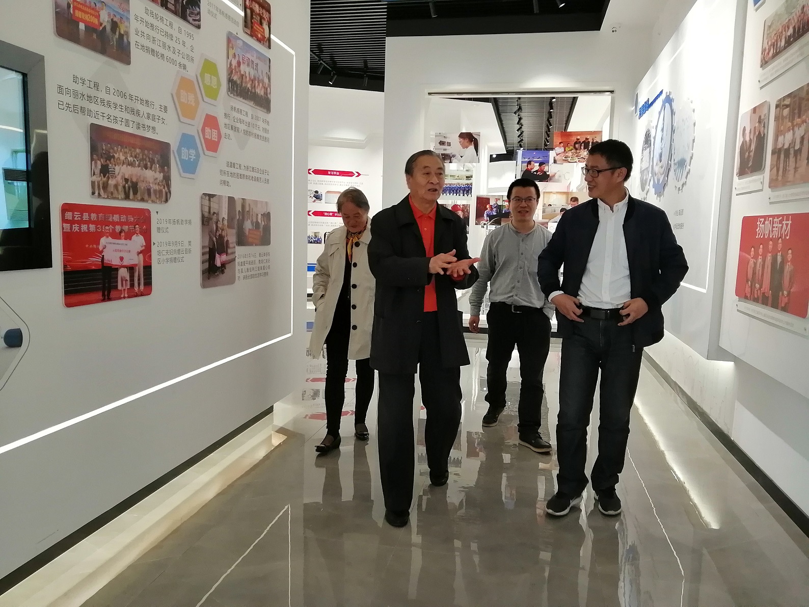 上午,金教授在樊董的陪同下參觀了上虞生產(chǎn)基地廠區(qū)、企業(yè)發(fā)展(產(chǎn)品)展示廳和黨建展廳及研發(fā)大樓實驗室。