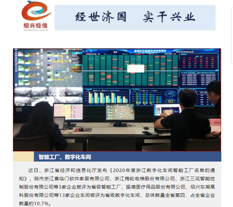 近日,浙江省經濟和信息化廳公布關于2020年浙江省數字化車間/智能工廠的名單,浙江揚帆新材料股份有限公司(300637)光引發(fā)劑制造數字化車間榮獲2020年浙江省數字化車間稱號。