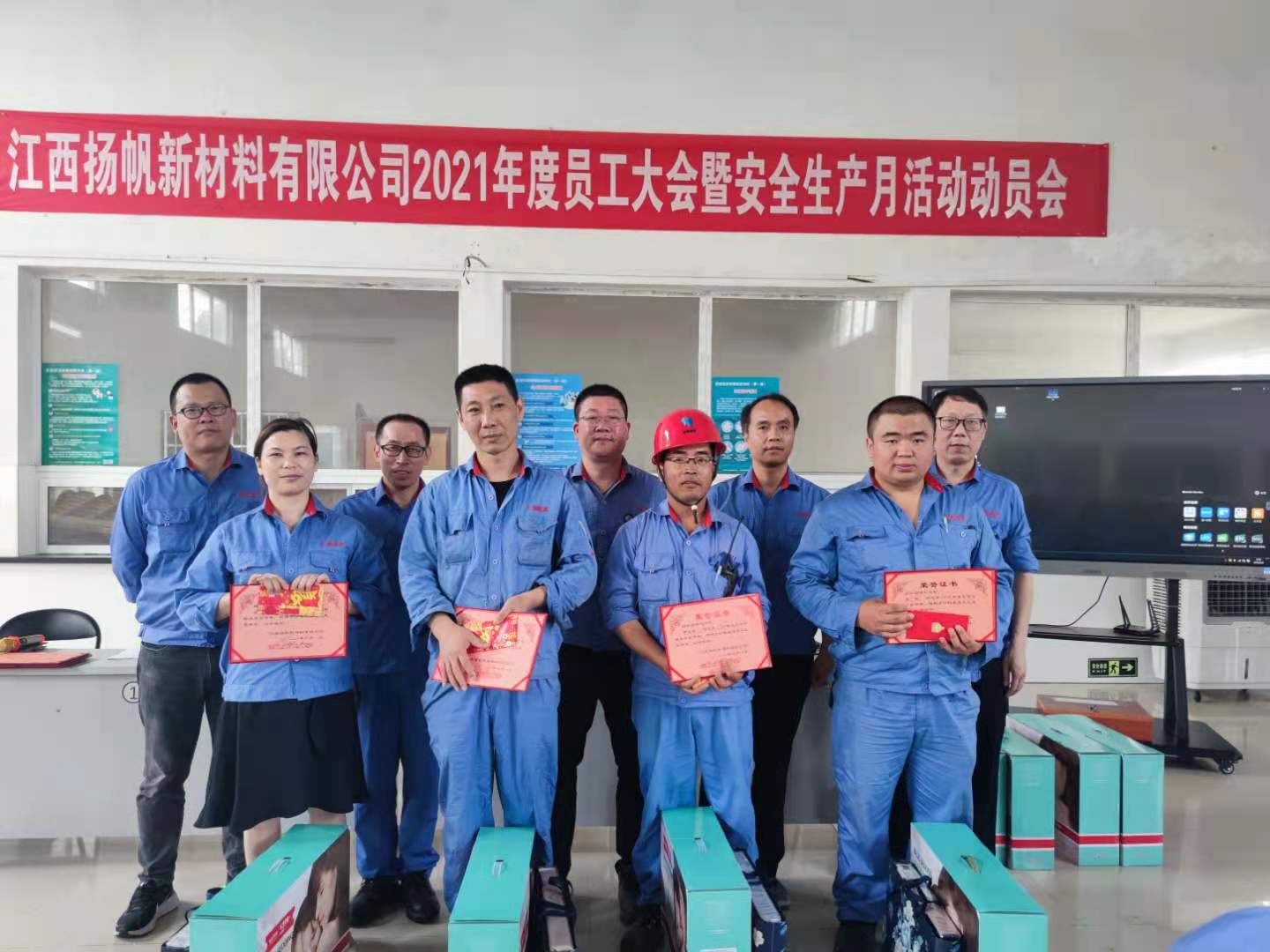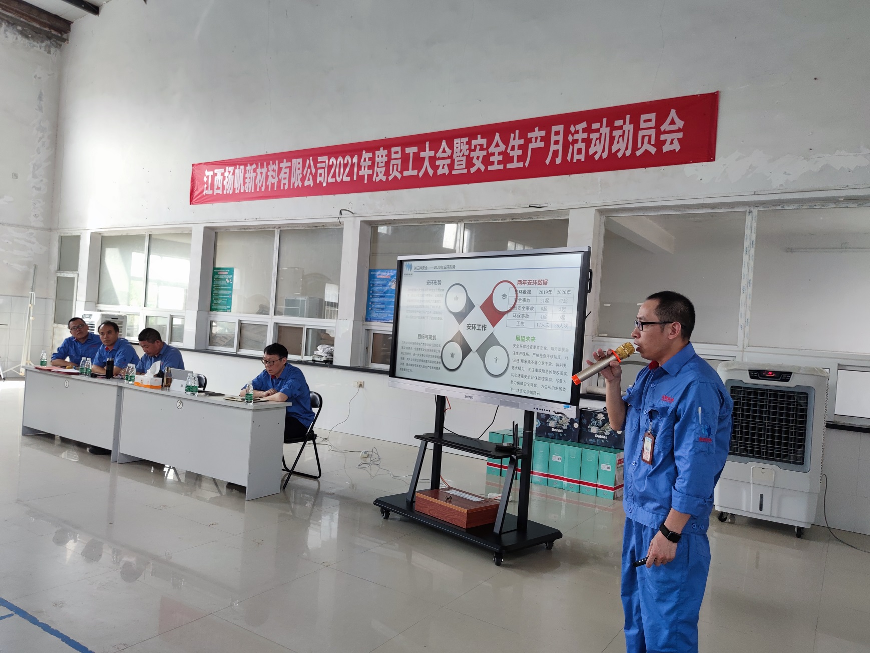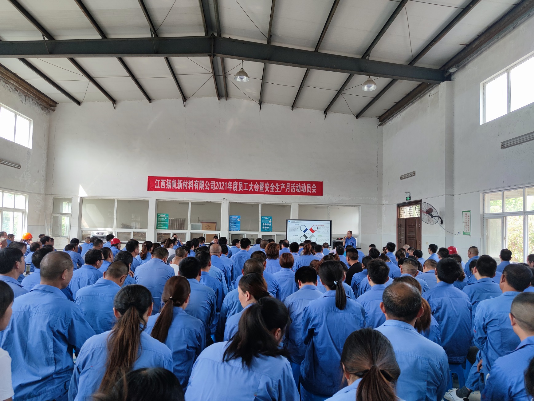 2021年6月8日,江西揚(yáng)帆公司召開2021年度員工大會(huì)暨安全生產(chǎn)月動(dòng)員會(huì)。揚(yáng)帆新材副總裁陶明,江西揚(yáng)帆公司總經(jīng)理余立志及經(jīng)營班子成員和全體員工參加了此次會(huì)議。會(huì)議由副總經(jīng)理呂雪皓主持。