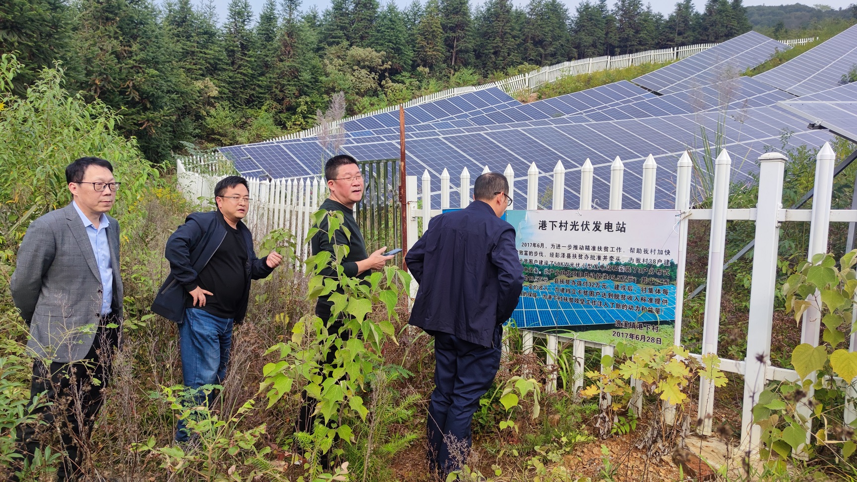 當天一行人如約到達港下村,張書記向陶總一行介紹了港下村基本情況。陶總在了解基本情況后表示:公司作為港下村結對企業(yè),不希望幫扶只是一次性搞個活動就結束,而是希望為村里發(fā)展提供力所能及的支持,為此公司接下來希望從組織剩余勞動力再就業(yè)、產業(yè)開發(fā)、給予困難人員公益幫助等方面進行幫扶,為更好地做好接下來的幫扶工作,座談中陶總特別對村目前產業(yè)布局、待開發(fā)山、地、水資源、剩余勞動力情況向張書記等村委人員一一進行了解。座談后在歐陽鎮(zhèn)長、張書記帶領下,一行人深入村內進行走訪,實地查看可開發(fā)荒地、現(xiàn)有光伏產業(yè)等現(xiàn)場,在走訪后,陶總根據村實際情況結合他前期市場調研和手上現(xiàn)有資源,提出了未來可擴大光伏產業(yè)及種植太平盛柿來進行產業(yè)幫扶的建議,并得到在場領導的初步認可。