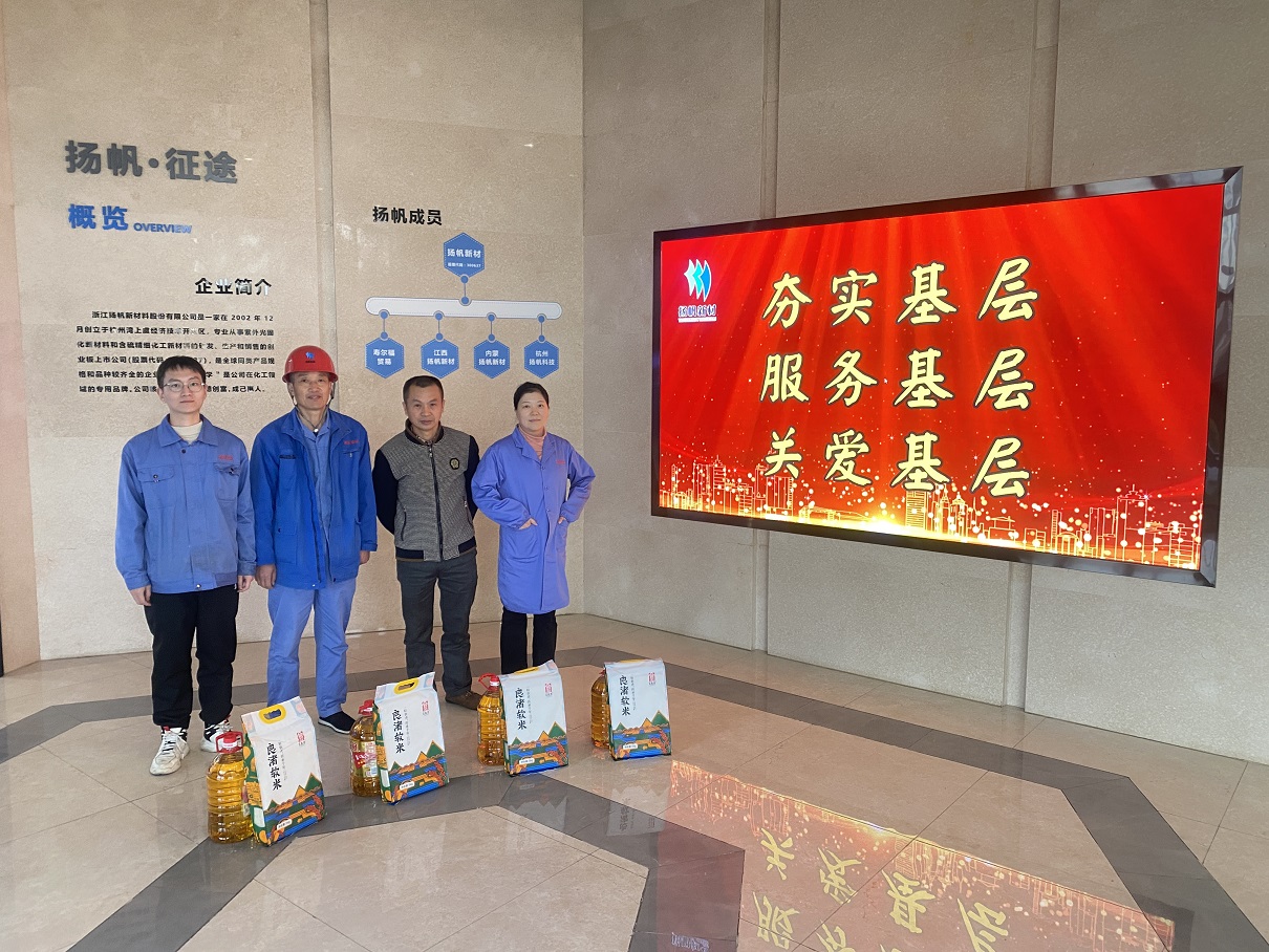 為推進(jìn)學(xué)習(xí)貫徹習(xí)近平新時(shí)代中國(guó)特色社會(huì)主義思想主題教育走深走實(shí),弘揚(yáng)中華傳統(tǒng)美德,關(guān)愛困難群體,履行社會(huì)責(zé)任,彰顯企業(yè)擔(dān)當(dāng), 2023年 11月17日下午,揚(yáng)帆新材支部委員會(huì)開展了走訪慰問老員工老黨員活動(dòng),為12戶職工送去了米、油等生活必需品。