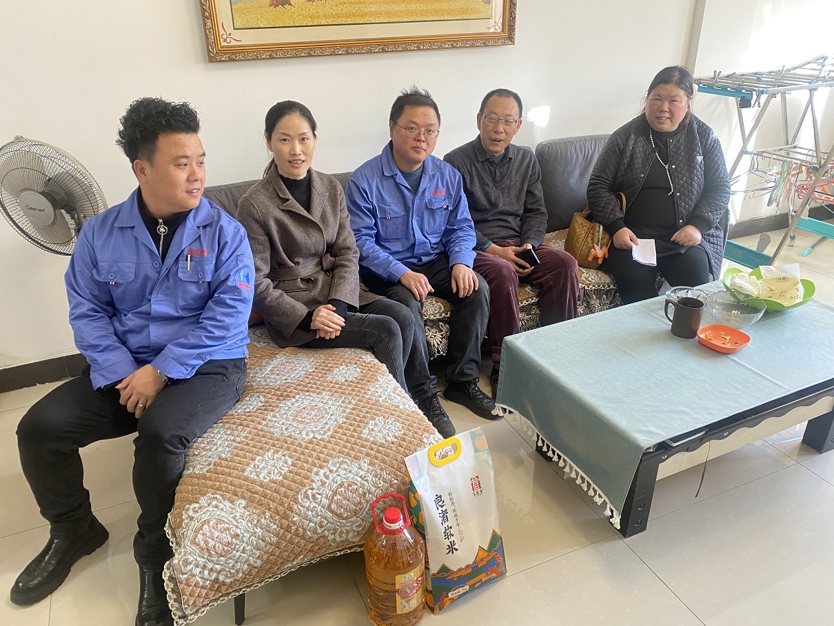 在員工謝東的家中,李琴等代表公司首先詢問了他們的生活和健康狀況,并進(jìn)行了親切的交談,感謝他們對(duì)揚(yáng)帆新材多年來做出的重要貢獻(xiàn)。
