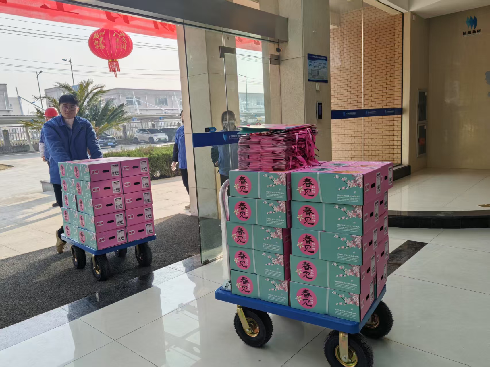 在春節(jié)來臨之際,為答謝每位員工的辛勤工作以及在過去一年中與公司一同攻堅(jiān)克難、上下同心、同舟共濟(jì),各項(xiàng)生產(chǎn)指標(biāo)與產(chǎn)量穩(wěn)中向好,公司特準(zhǔn)備了一批精美水果年貨作為員工的新春福利,以滿滿的誠意為員工送上節(jié)日溫暖。