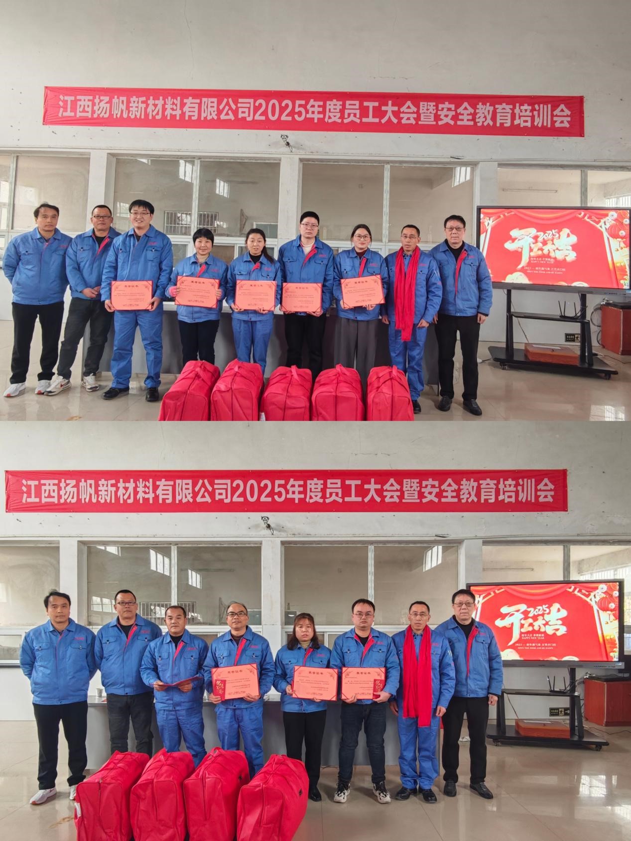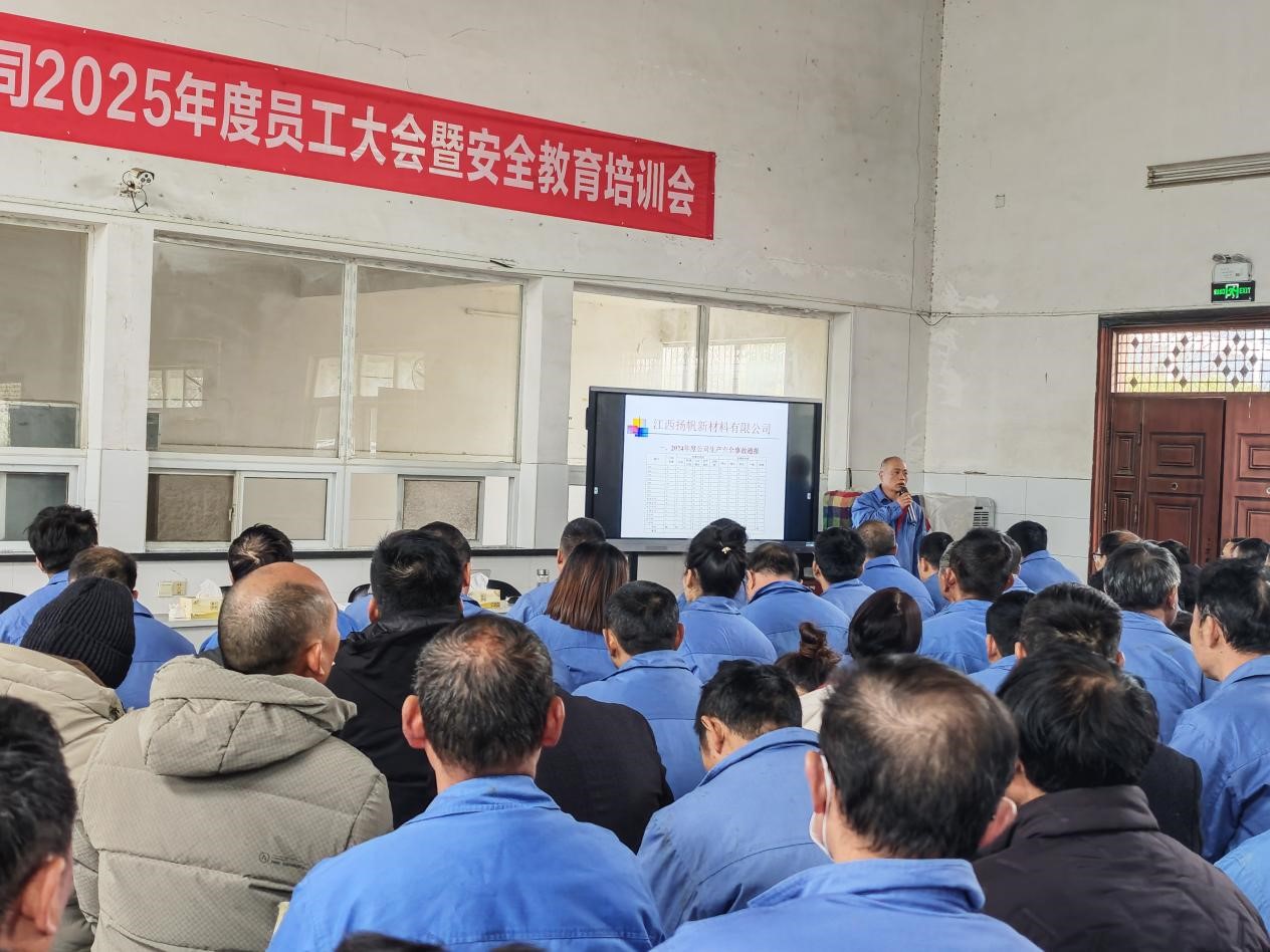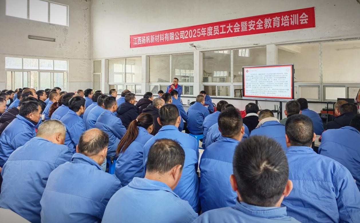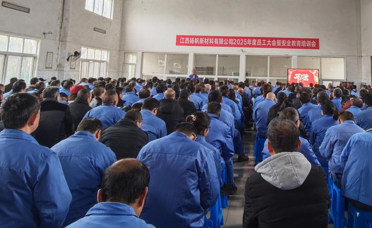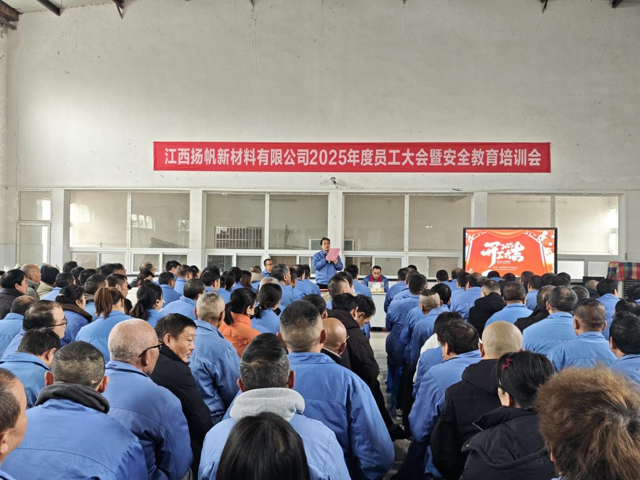 2025年2月6日,江西揚(yáng)帆公司召開2025年度員工大會(huì)暨安全教育培訓(xùn)會(huì)。公司總經(jīng)理余立志及經(jīng)營(yíng)班子成員和全體員工參加了此次會(huì)議。會(huì)議由副總經(jīng)理呂雪皓主持。