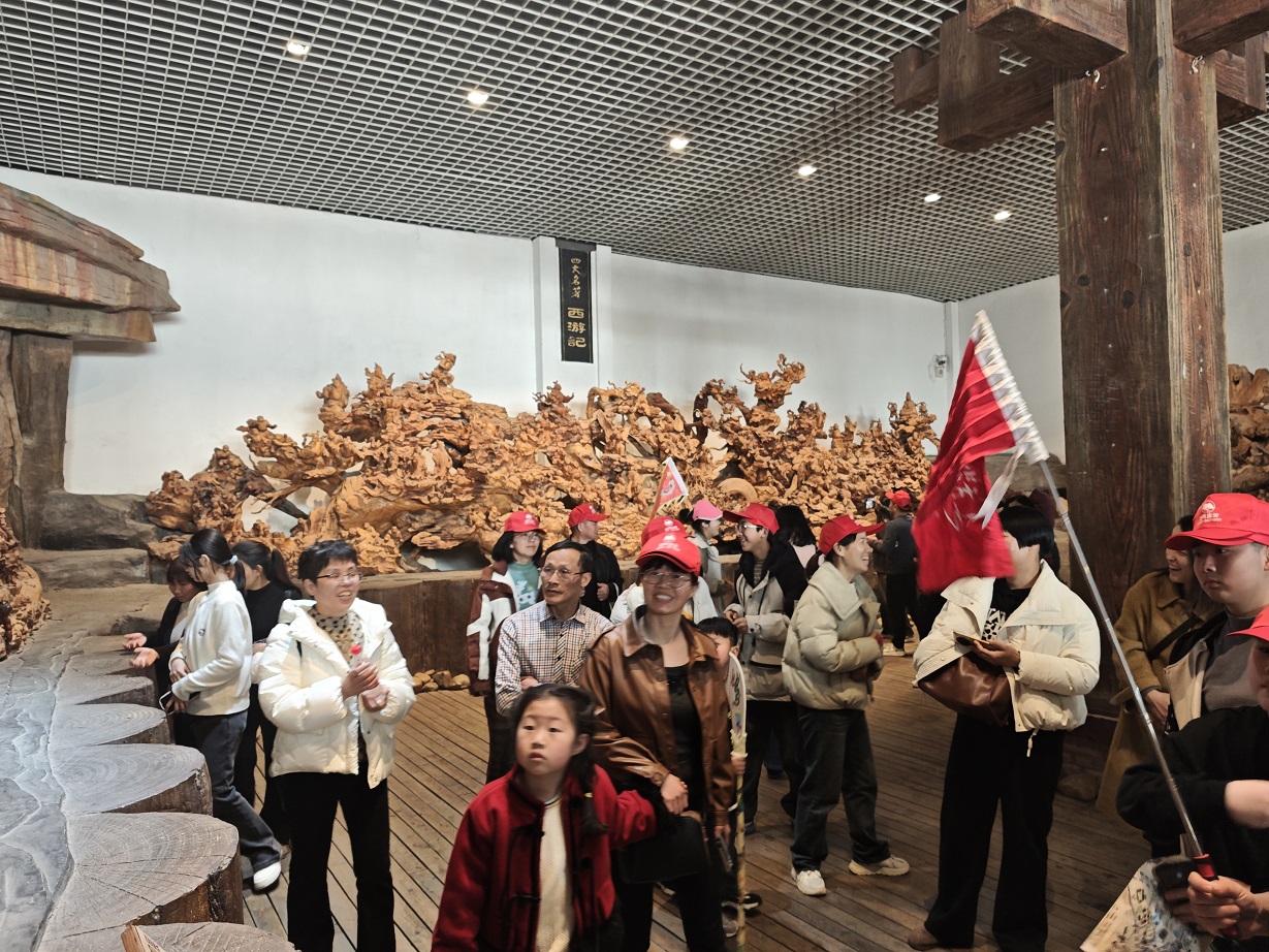 此次出游目的地為安徽太湖縣五千年文博園。抵達景區(qū)后,大家迫不及待地進入文博園,跟著導游的講解徜徉在五千年燦爛文化中:尋根問祖文化墻、摩崖瀑布、中華孝道園、中華漢字龍見證古典文化創(chuàng)意;“孔子列國行”、“老子天下第一”、“釋迦牟尼臥佛”見證儒、道、佛“三教并流”的和諧文化;1500米巨幅歷史長卷、秦始皇塑像群、茶馬古道,五千年根雕藝術(shù)館——上千件5噸重根雕讓大家感嘆化腐朽為神奇的根雕藝術(shù),萬佛塔、華夏愛情文化園、中華百工坊、百年民俗館、四大名著文化園再現(xiàn)歷史文化的千年滄桑……一期、二期兩個園內(nèi)景點錯落有致,它們濃縮著中華五千年文化的精髓,每一塊磚瓦、每一處雕刻,都仿佛在訴說著往昔的故事,吸引著大家紛紛駐足觀賞、拍照留念,活動在大家無數(shù)次的贊美中愉快結(jié)束!