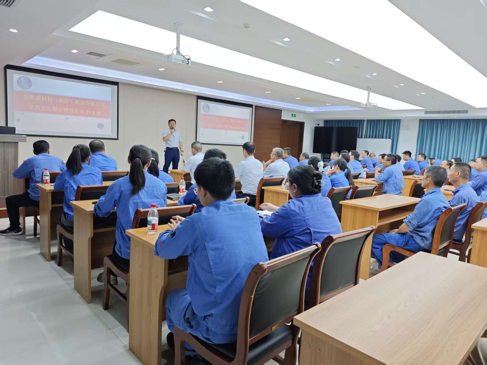 9月30日下午,揚(yáng)帆新材料(浙江)股份有限公司在研究院三樓會(huì)議室組織開展了全員安全警示教育培訓(xùn)活動(dòng)。此次培訓(xùn)由環(huán)安總監(jiān)舒國(guó)棟主持,董事長(zhǎng)樊彬、總裁陶明出席并作出重要指示,公司全體員工參加培訓(xùn)。